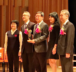 陳旻苹理事長在介紹得獎人時指出,校友會將逐年頒給各領域表現優異的校友。今年以公務領域為主,獲獎人翁文祺校友是於靜心中學畢業後,就讀於建國中學、台灣大學、英國倫敦市立大學研究所。公職生涯始於外交部,在財政部、金管會歷練後,曾經擔任我國駐印度代表,現在是中華郵政公司董事長。
